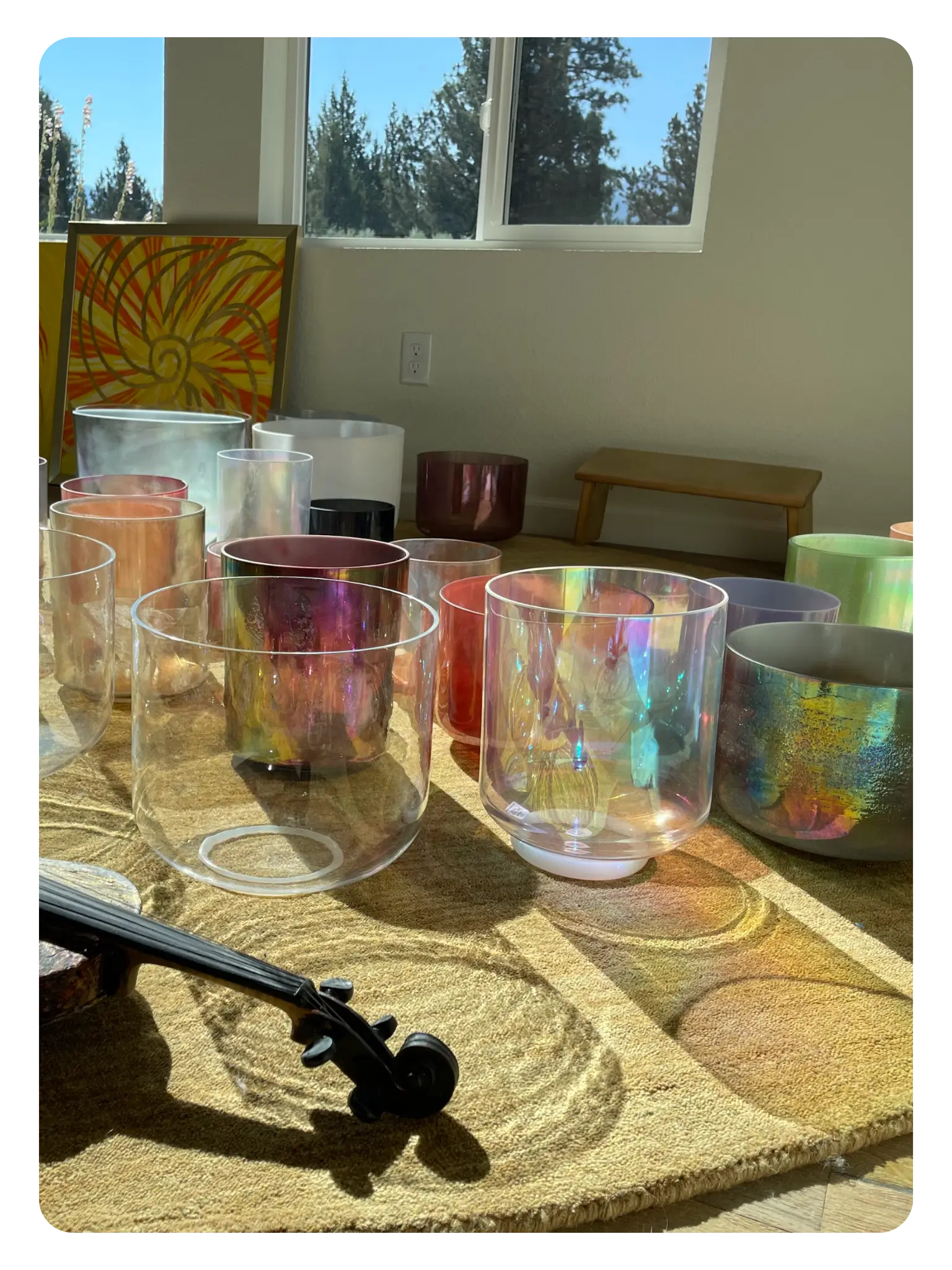 Master practitioner Donna creates perfect frequency harmonies with crystal singing bowls, generating vibrations that help you connect with your own healing energies and remember your wholeness.